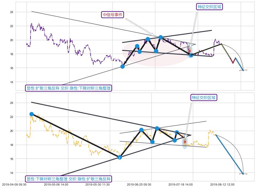 ➢ 扩散三角反转属【中级别信号事件】下降对称三角整理属【长级别信号事件】中长周期组合信号事件,中长事件长度比43.99%
