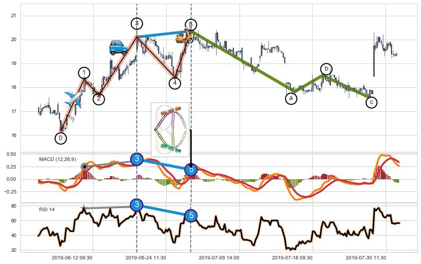 ➣ 第一, 三, 五浪上涨动能逐渐【衰弱变小】,趋势呈现不稳迹象