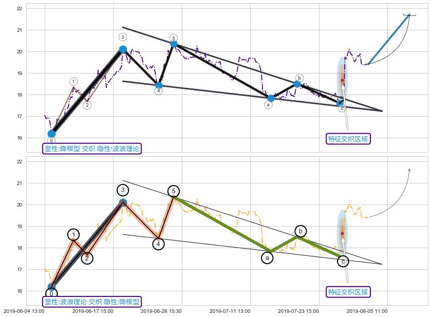 ➢ 降楔型与波浪理论信号事件周期长度级别相同,同周期信号事件