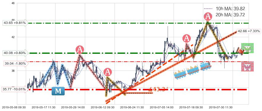 ♘ 阻力价格位43.65,可信任强度55.94%,距离最后交易2019-07-31 15:00形成的收盘价格39.75相差 +9.81%