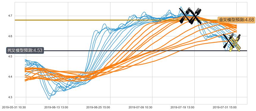 ➣ 55小时均线于(07-19 14:00: 4.69)形成【死叉】基于【死叉历史模型】预测死叉后最低波谷价格: 4.57, 死叉后最低价格4.52,已经下跌超出预测最低波谷价格, 预期反弹