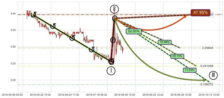 ➣ 调整浪已超过预测的c点位置,后续大趋势循环浪继续下跌概率52.05%,谨慎做多