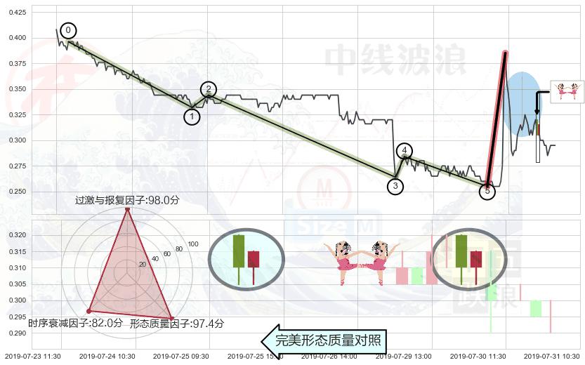 从2019-07-22 11:30至2019-07-31 15:00,共包含46个小时,阶段股价上涨20.38%,阶段股价变动位移路程比: 1 : 6