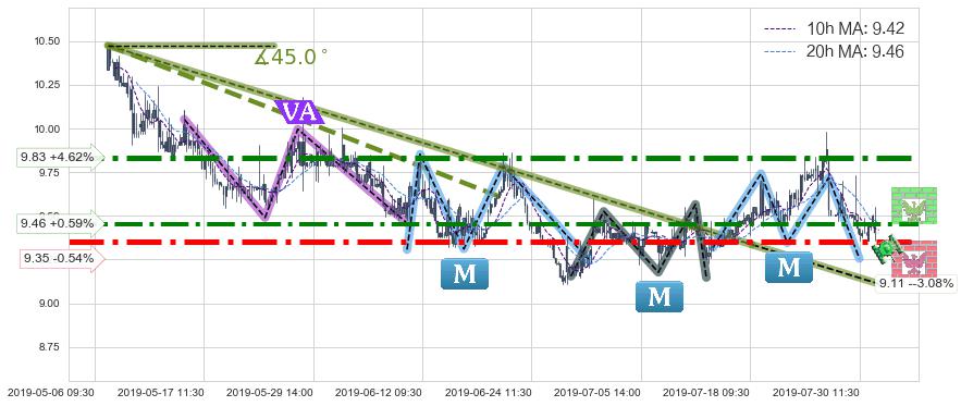 ♘ 支撑价格位9.35,可信任强度94.05%,距离最后交易2019-07-31 15:00形成的收盘价格9.40相差 -0.54%