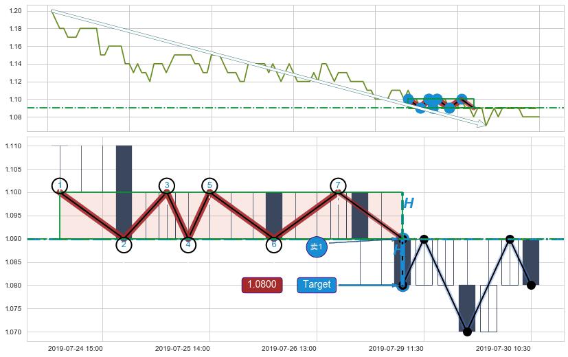 ➢ 【已达成】最小【整理】第一目标价格→(07-29:10: 1.0800 ), 后续继续【整理】下跌动力微弱,下跌较小
