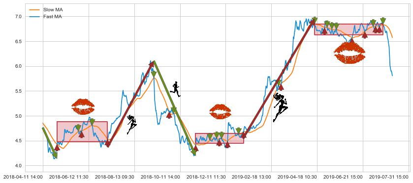 04-30 14:00至07-09 14:00 慢线与快线多次接触,存在上下穿越,有缠绕