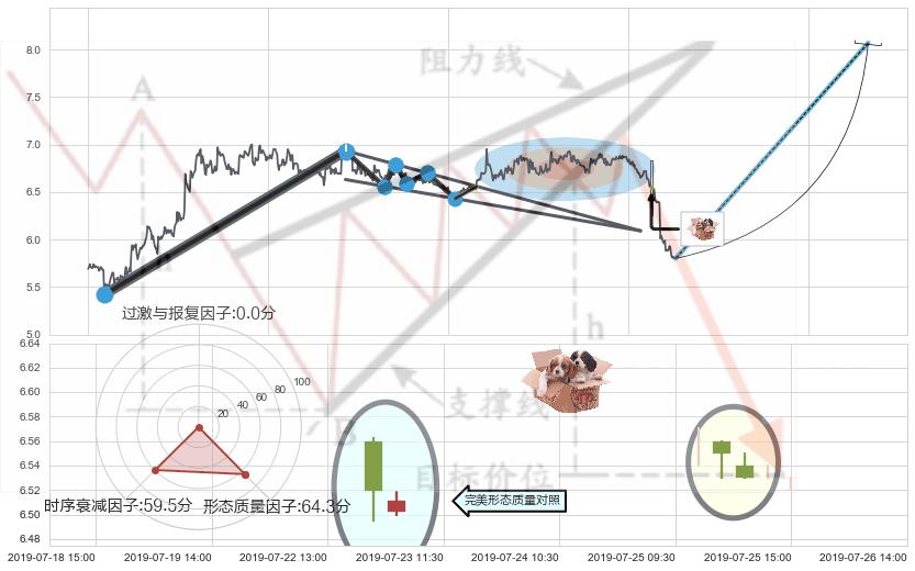 ➢ 🕰 价格走势在2019-07-25 11:30:00至2019-07-25 13:00:00期间形成底部尽头线(上山虎),残存影响值:2.74