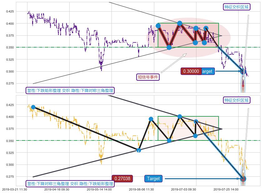 ➢ 下跌矩形整理属【短级别信号事件】下降对称三角整理属【长级别信号事件】长短周期组合信号事件, 短长事件长度比35.47%