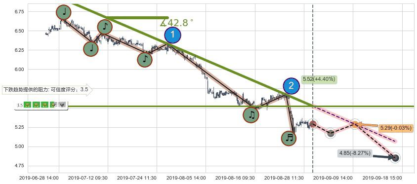 ➣ 预测:2019-09-10 10:00,【试探阻力】稳定目前下跌趋势的前提下,预测价格:5.29