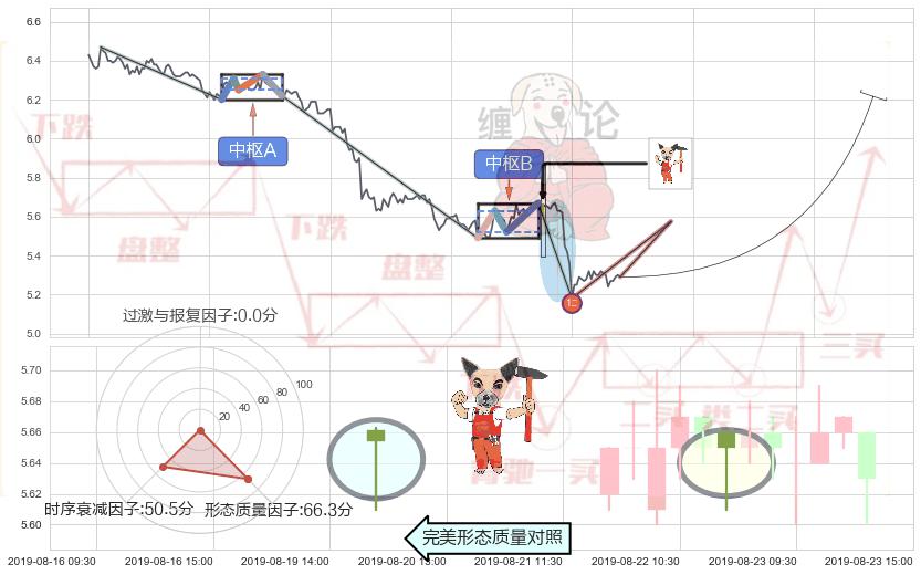 ➣ 【中枢B】:08-16:09-08-22:10,中枢由4笔构成,共26交易小时, ZG=5.63, ZD=5.52