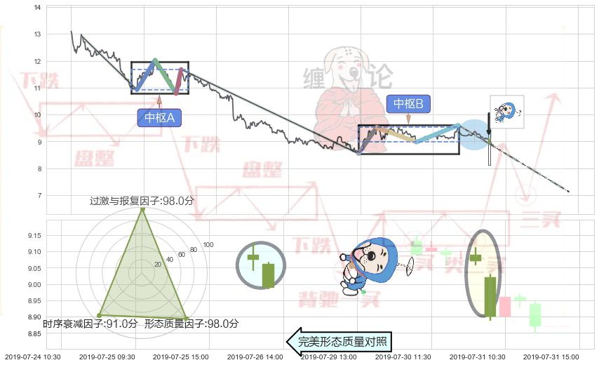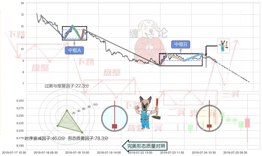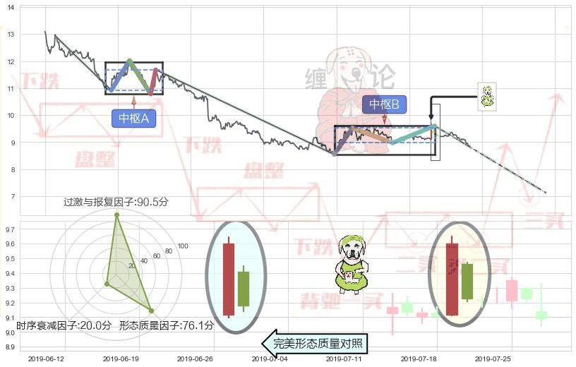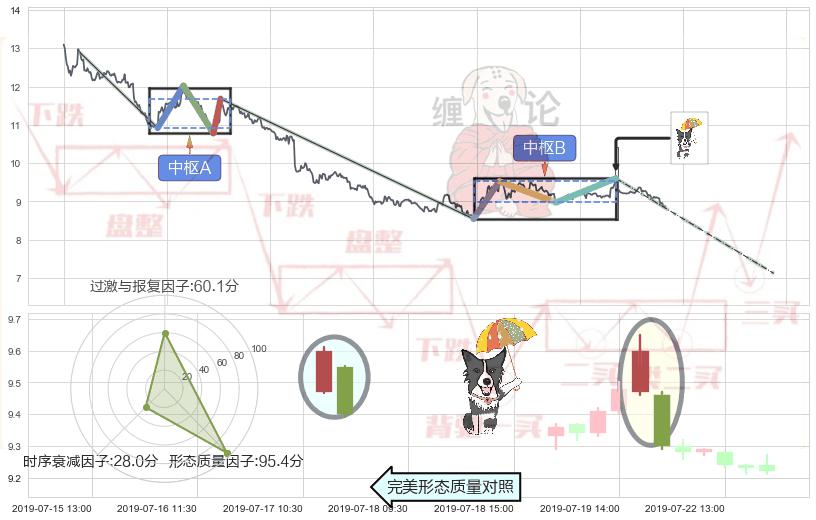 ➣ 下跌螺旋桨 + 缠论中枢点破位中枢B支撑下拉信号叠加后【信号初始稳固度】中等,【看空】信号叠加【可信度影响中等】
