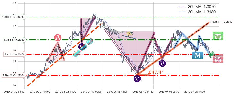 ♘ 阻力价格位1.3838,可信任强度83.78%,距离最后交易2019-07-31 15:00形成的收盘价格1.2900相差 +7.27%
