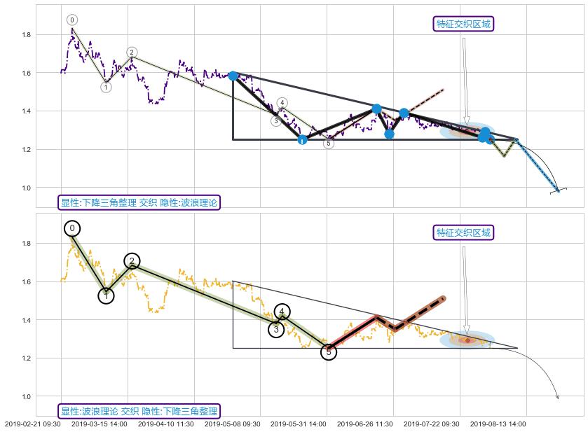 ➢ 下降三角整理与波浪理论信号事件周期长度级别相同,同周期信号事件