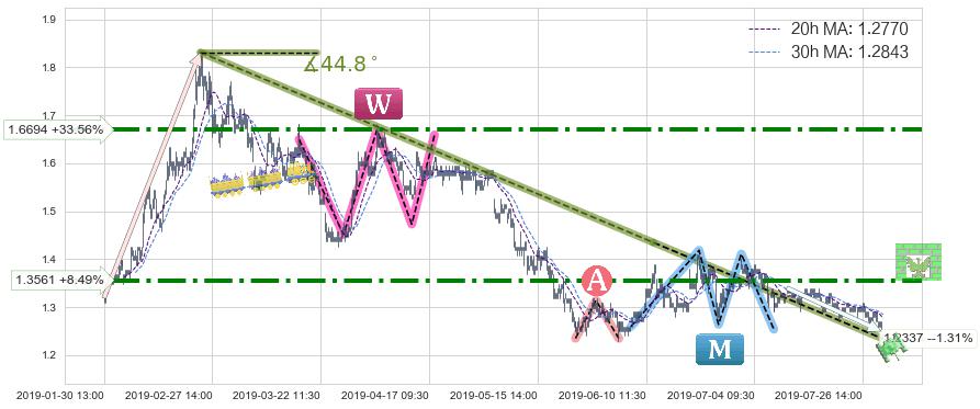 ♘ 阻力价格位1.3561,可信任强度78.91%,距离最后交易2019-07-31 15:00形成的收盘价格1.2500相差 +8.49%
