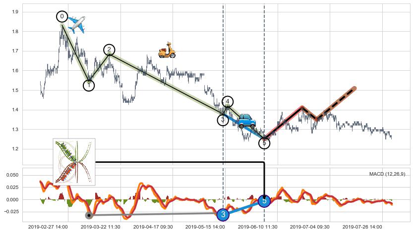 ➣ 波浪理论:猜想达到c点后小反弹终止反转下跌 → 下跌 → 【拐点】临近 → 阶段均值回复结束后继续大周期趋势跟踪