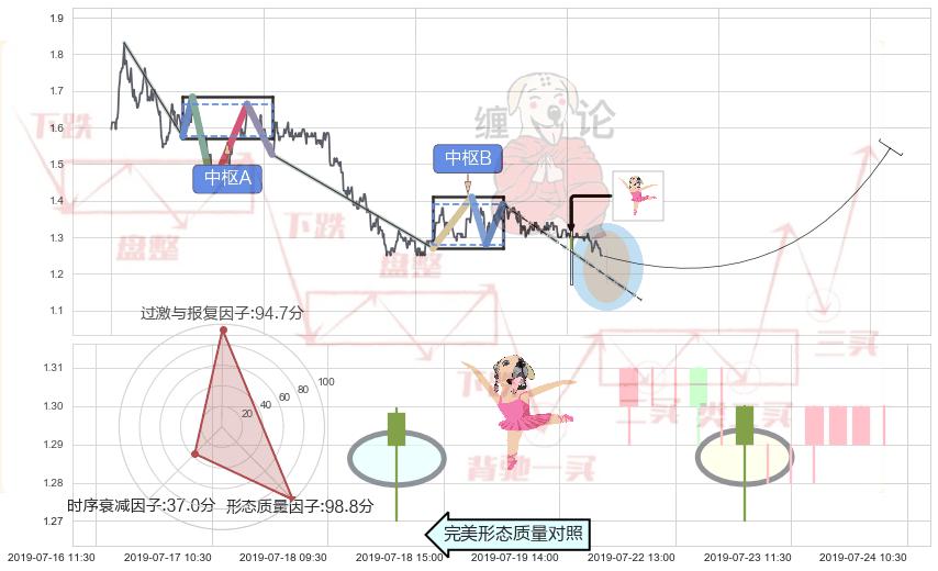 从2019-07-09 09:30至2019-07-31 15:00,共包含102个小时,阶段股价下跌-3.72%,阶段股价变动位移路程比: 1 : 11