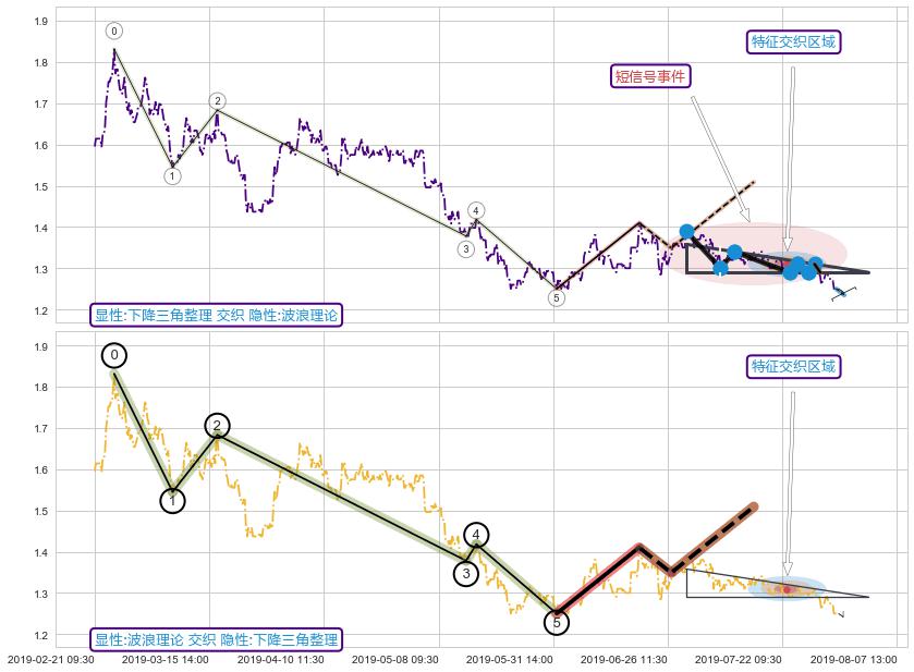 ➢ 下降三角整理属【短级别信号事件】波浪理论属【长级别信号事件】长短周期组合信号事件, 短长事件长度比21.11%