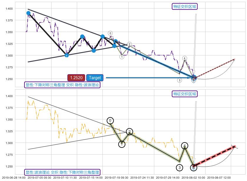 ➢ 下降对称三角整理与波浪理论信号事件周期长度级别相同,同周期信号事件