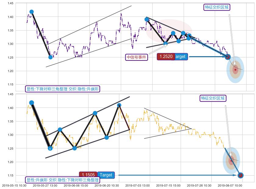 ➢ 下降对称三角整理属【短级别信号事件】缠论中枢点属【长级别信号事件】长短周期组合信号事件, 短长事件长度比11.57%