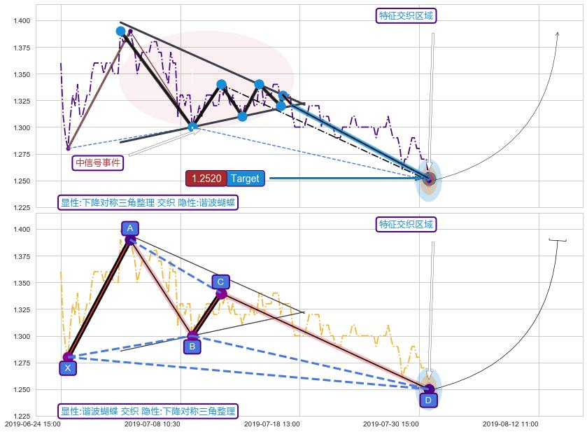 ➢ 下降对称三角整理属【中级别信号事件】谐波蝴蝶属【长级别信号事件】中长周期组合信号事件,中长事件长度比48.03%