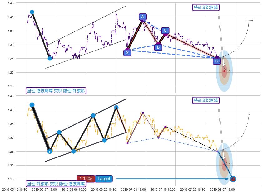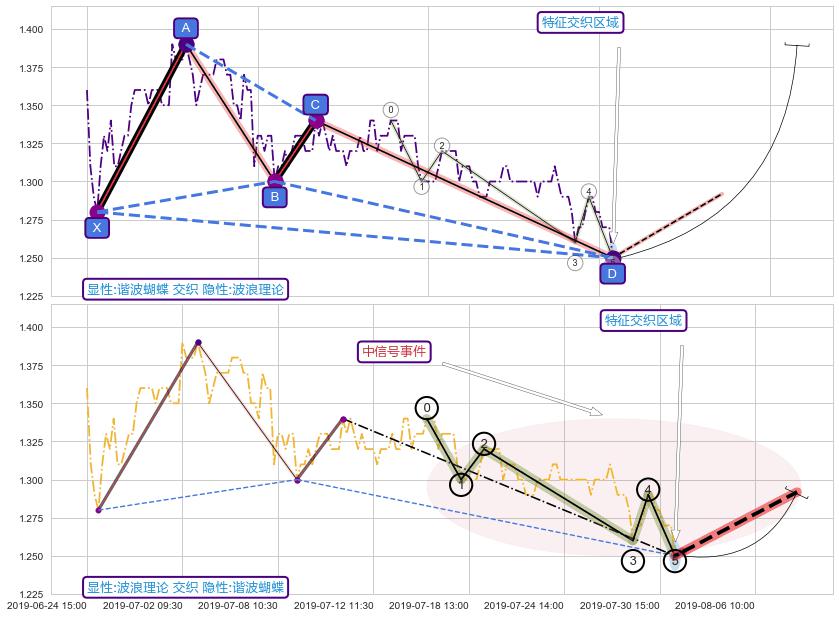 ➣ 已完成【蝴蝶】形态起点X: 06-25:11, 终点D: 07-31:13, 共152交易小时