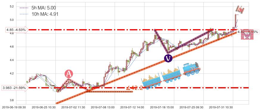 ➣ 预测:2019-08-07 12:00,【小幅回撤】稳定目前上涨趋势的前提下,预测价格:5.01