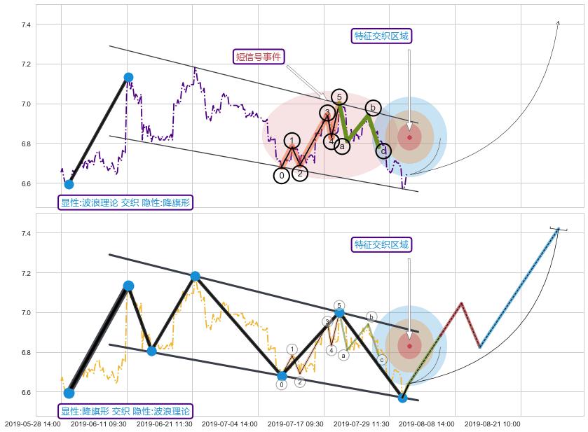 ➢ 波浪理论属【短级别信号事件】降旗形属【长级别信号事件】长短周期组合信号事件, 短长事件长度比28.85%