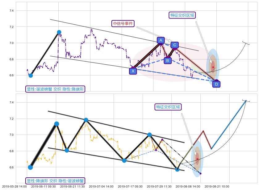 ➢ 未完成【螃蟹】形态起点X: 07-09:14, 已到达C点: 07-24:14, 预测最终D点: 08-08:14, 共128交易小时