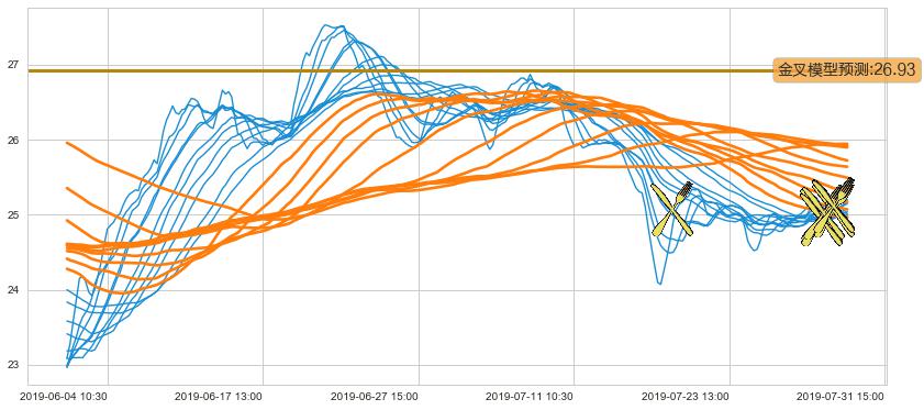 ➢ 60小时均线于(07-30 11:30: 24.93)形成【金叉】基于【金叉历史模型】预测金叉后最高波峰价格: 27.27, 金叉后最高价格25.40,尚未达到预测最高波峰价格, 预期继续上涨
