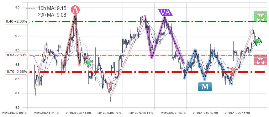 ♘ 阻力价格位9.40,可信任强度71.57%,距离最后交易2019-10-28 15:00形成的收盘价格9.19相差 +2.30%
