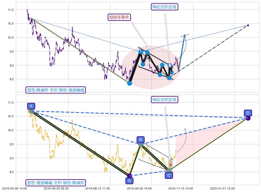 ➢ 降旗形属【短级别信号事件】谐波蝙蝠属【长级别信号事件】长短周期组合信号事件, 短长事件长度比29.34%