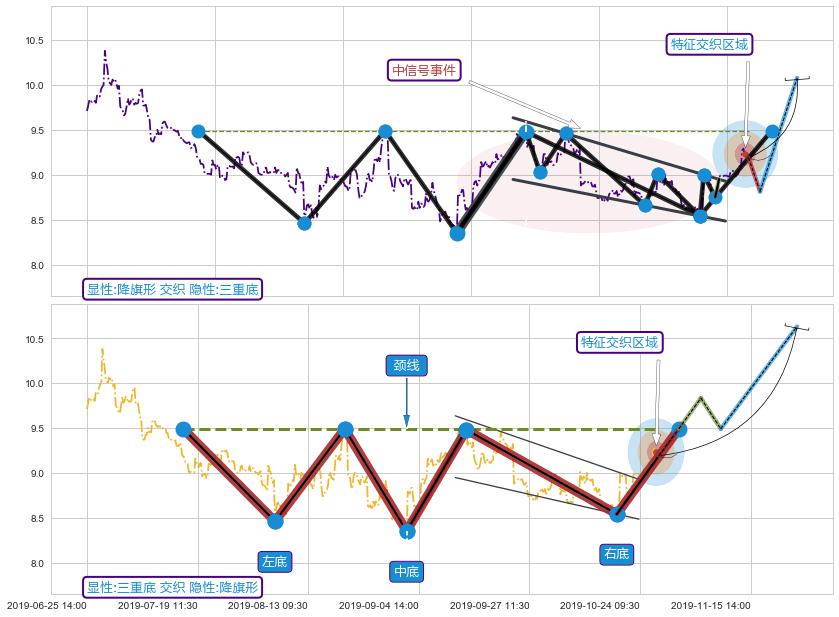 ➢ 降旗形属【中级别信号事件】三重底属【长级别信号事件】中长周期组合信号事件,中长事件长度比40.87%