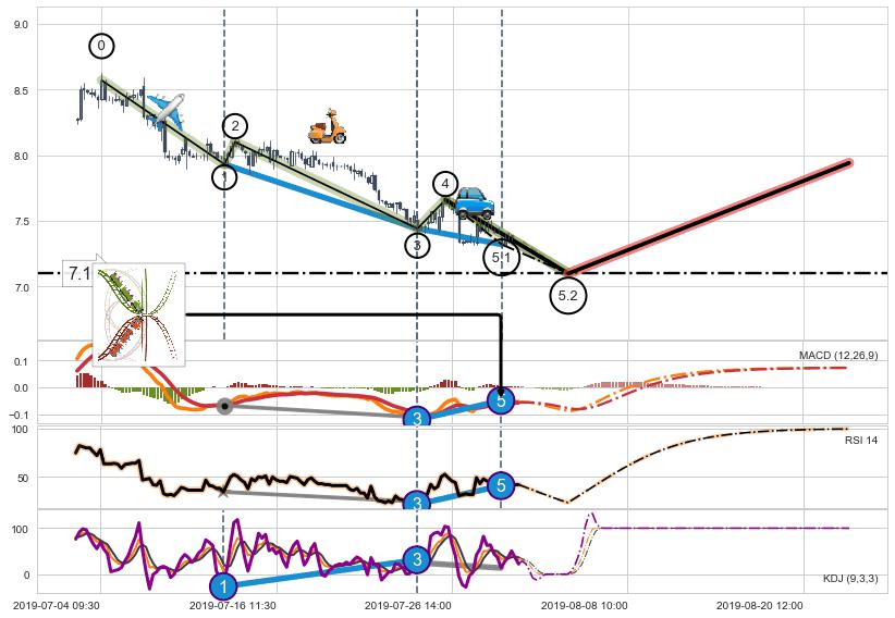 ➢ 5.2: 预测第5浪最终位置(08-05:11, 7.10)
