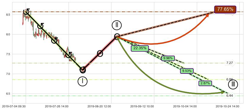 ♘ 支撑价格位7.28,可信任强度84.30%,距离最后交易2019-07-31 15:00形成的收盘价格7.36相差 -1.04%