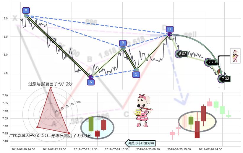 ➢ 🕰 价格走势在2019-07-29 00:00:00至2019-07-29 00:00:00期间形成锤头线(锤子线),残存影响值:7.11