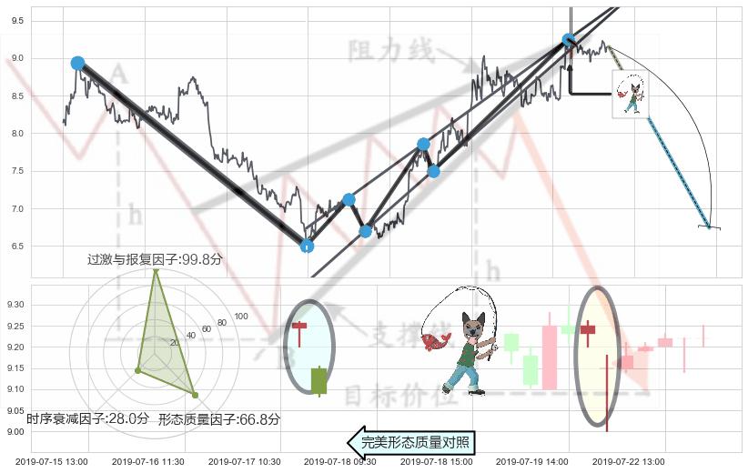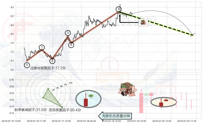 ➢ 🕰 价格走势在2019-07-22 10:30:00至2019-07-22 11:30:00期间形成顶部尽头线(下山虎),残存影响值:-2.39