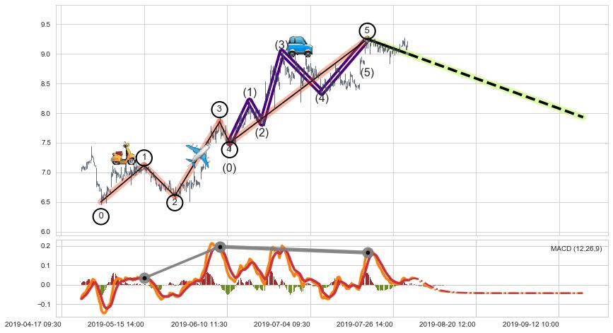 ➣ 波浪理论:猜想止涨 → 下跌 →【拐点】浪5已完成 → 大趋势均值回复