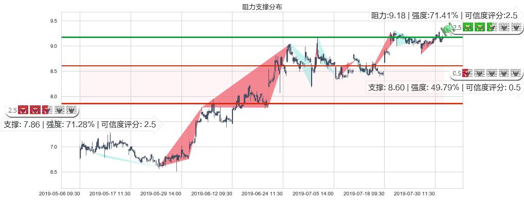 ♘ 支撑价格位8.60,可信任强度49.79%,距离最后交易2019-07-31 15:00形成的收盘价格9.15相差 -6.00%