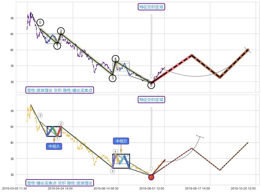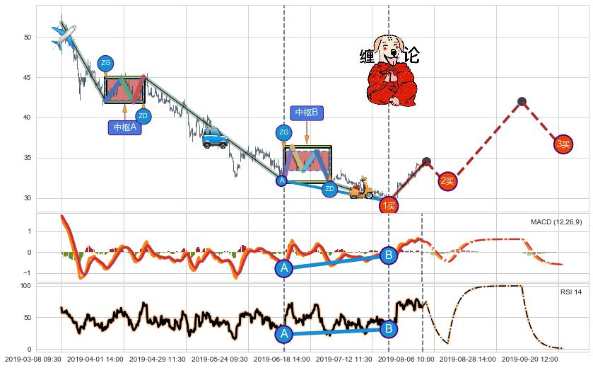 ➣ 缠论买卖点:下降缠中枢AB形成后猜想拐点1买已到达,猜想后续持续拉升(均值回复)