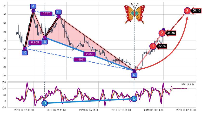 ➣ 已完成【蝴蝶】形态起点X: 06-06:14, 终点D: 07-18:15, 共170交易小时