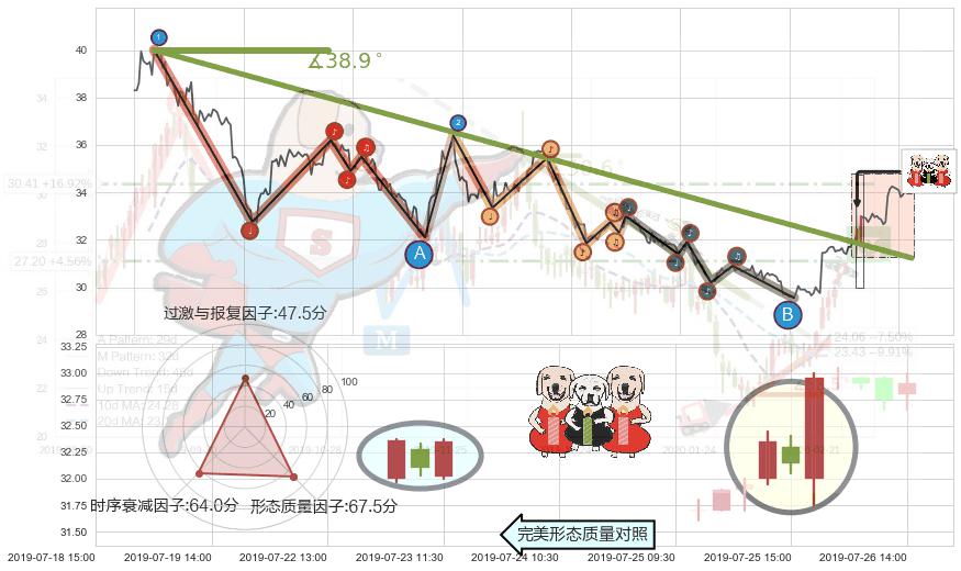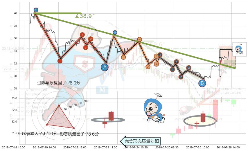 ➢ 2019-05-08 09:30-2019-07-23 11:30下跌趋势存在反转上涨[机会],其原下跌趋势的阻力位(31.23)已被突破[强支撑信号],原下跌趋势角度: 38.9˚