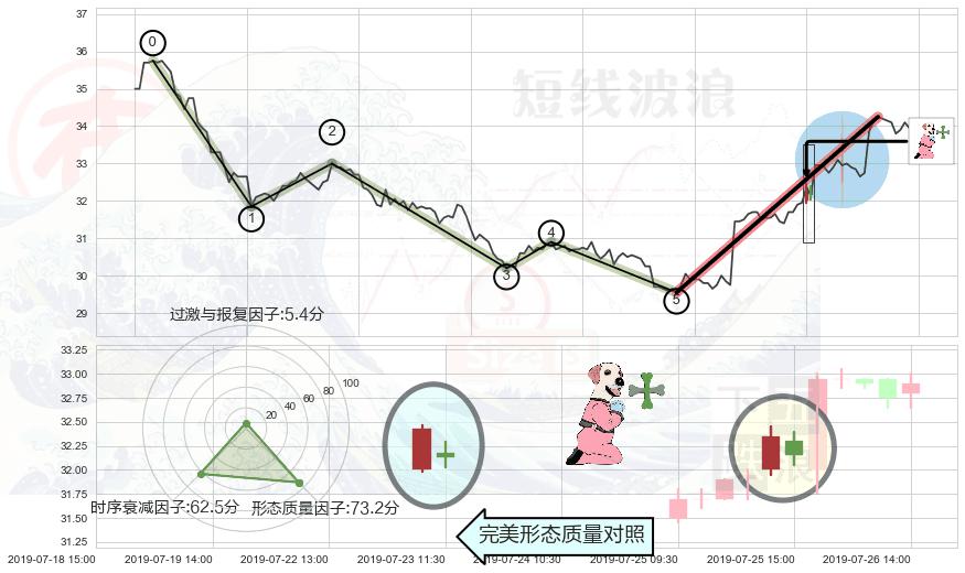 从2019-07-10 13:00至2019-07-12 10:30,共包含11个小时,阶段股价上涨2.30%,阶段股价变动位移路程比: 1 : 1.6