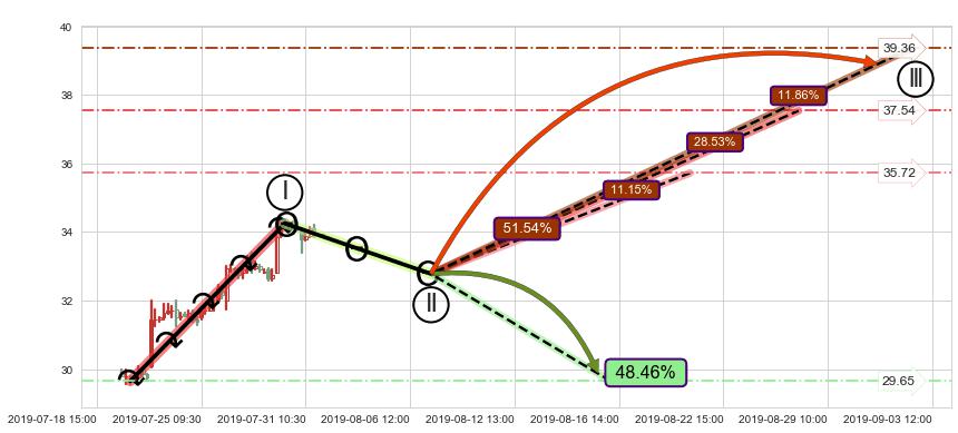 ♘ 支撑价格位30.93,可信任强度74.86%,距离最后交易2019-07-31 15:00形成的收盘价格33.95相差 -8.90%
