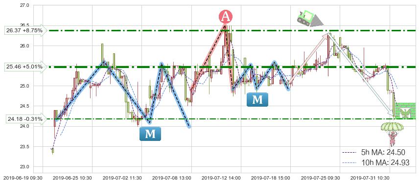 ♘ 阻力价格位25.46,可信任强度75.39%,距离最后交易2019-07-31 15:00形成的收盘价格24.25相差 +5.01%