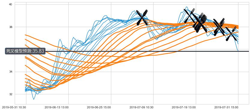 ➣ 120小时均线于(07-22 10:30: 38.43)形成【死叉】基于【死叉历史模型】预测死叉后最低波谷价格: 36.35, 死叉后最低价格35.80,已经下跌超出预测最低波谷价格, 预期反弹