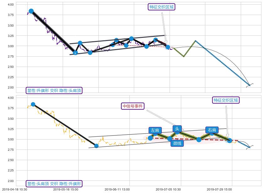 ➢ 头肩顶属【中级别信号事件】升旗形属【长级别信号事件】中长周期组合信号事件,中长事件长度比44.85%