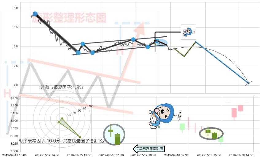 从2019-07-19 11:30至2019-07-31 15:00,共包含52个小时,阶段股价下跌-6.81%,阶段股价变动位移路程比: 1 : 3