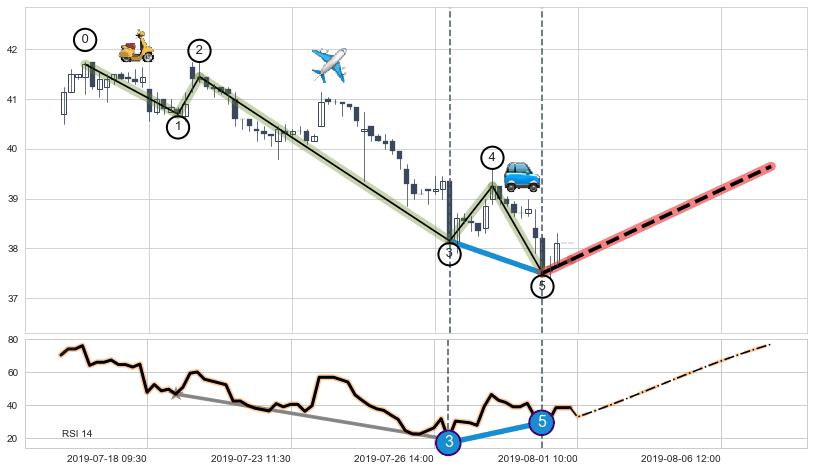 ➣ 【RSI】下跌趋势出现【常规背离 & 反转信号】背离程度99.00%,背离夹角角度63.9˚,背离程度较大