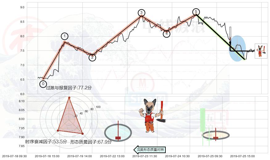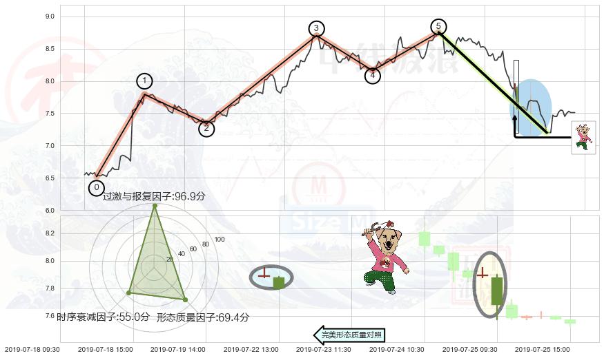 ➢ 🕰 价格走势在2019-07-24 15:00:00至2019-07-25 09:30:00期间形成射击之星形态,残存影响值:-4.53