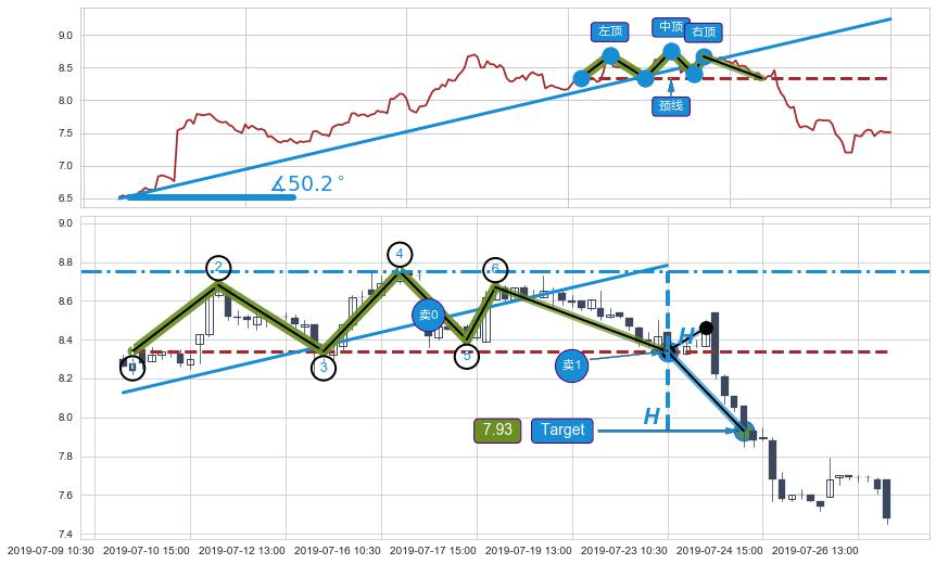 ➢ 【卖1】: 激进型 卖点→(07-23:10: 8.34 )形成突破三重顶【反转】形态